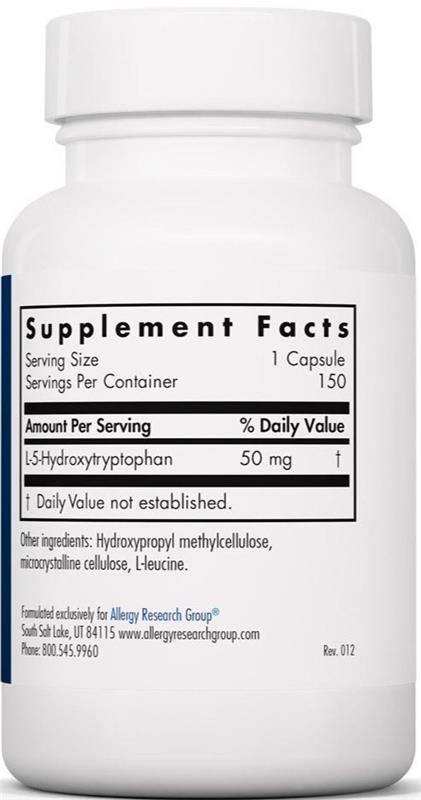 L-Tryptophan is an essential amino acid that is converted into L-5-Hydroxytryptophan (5-HTP) in the body. 5-HTP is then converted into serotonin and melatonin. Normal serotonin levels have been associated with normal moods, appropriate appetite and weight maintenance, and proper sleep. ARG 5-HTP is derived from a plant source, and is carefully tested to ensure its purity and to guarantee the absence of contaminants.